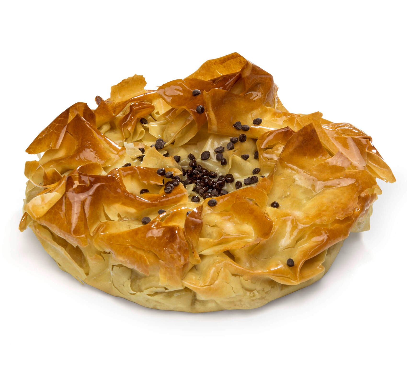 Die perfekte Balance aus saftiger Birne, reichhaltiger Schokolade und himmlischer Vanille-Mandelcrème umhüllt von knusprigem Filoteig mit einem Hauch von Armagnac.