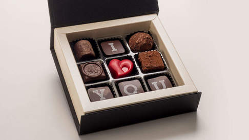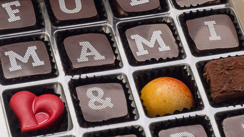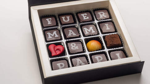 Überraschen Sie Kunden, Freunde oder Ihre Liebsten mit einer persönlichen Pralinenbotschaft. Kurztexte mit 9, 16 oder 25 Zeichen verblüffen Ihre Empfänger. Mit wenigen Klicks versenden Sie eine süsse Botschaft an Ihre Liebsten. Sogar die Banderole der Pralinenschachtel können Sie individualisieren. Kreieren Sie jetzt Ihre Überraschung in unserem Konfigurator.